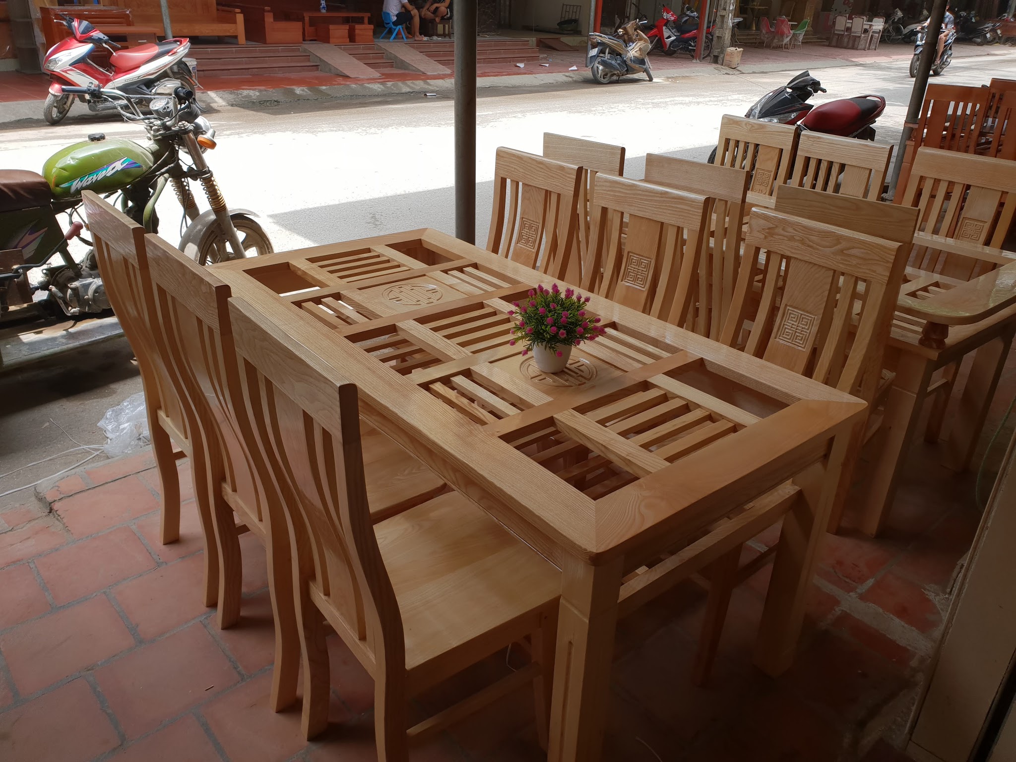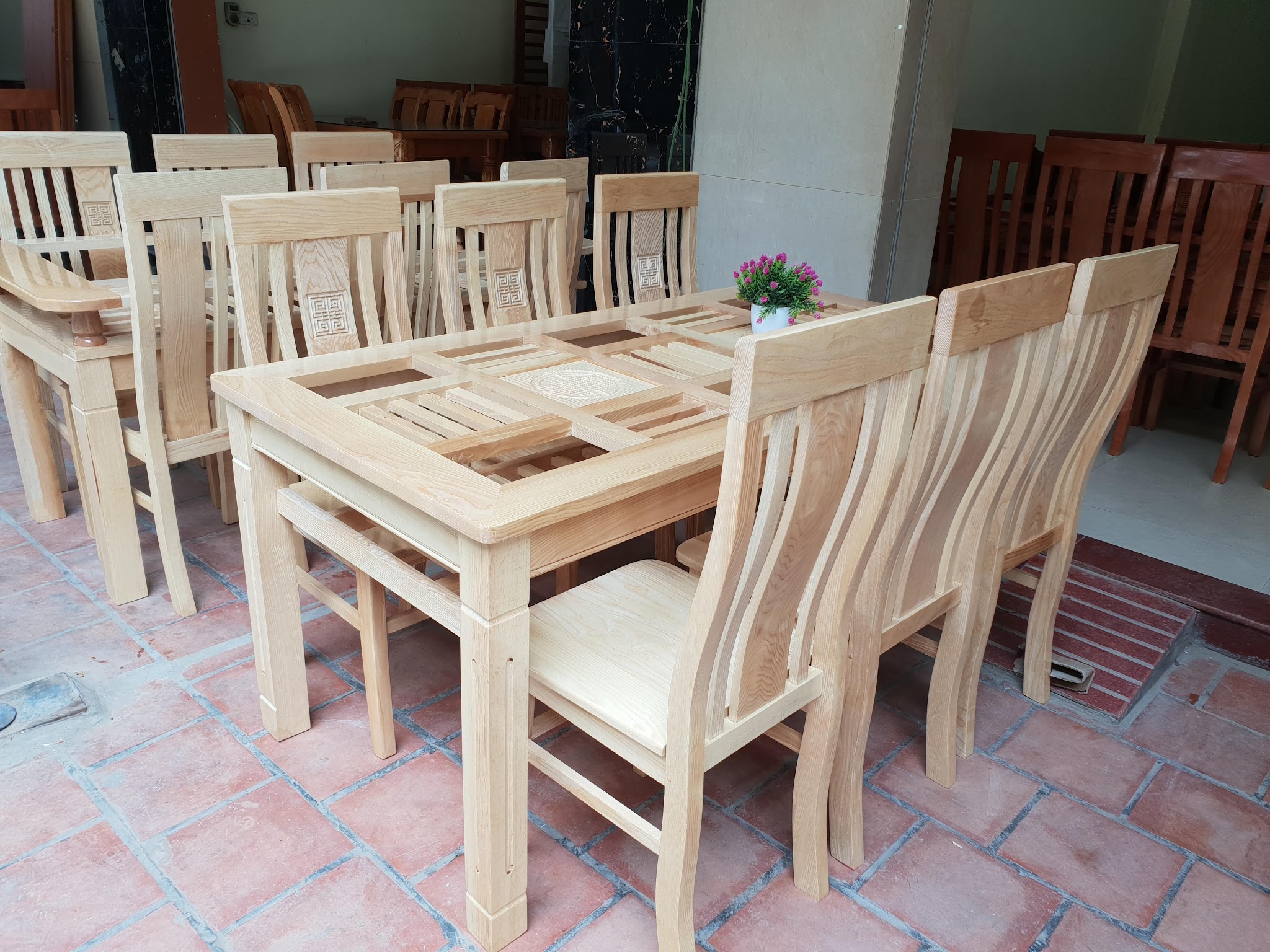 Kích thước: 1 bàn dài 160cm x rộng 80cm x cao75cm cùng 6 ghế