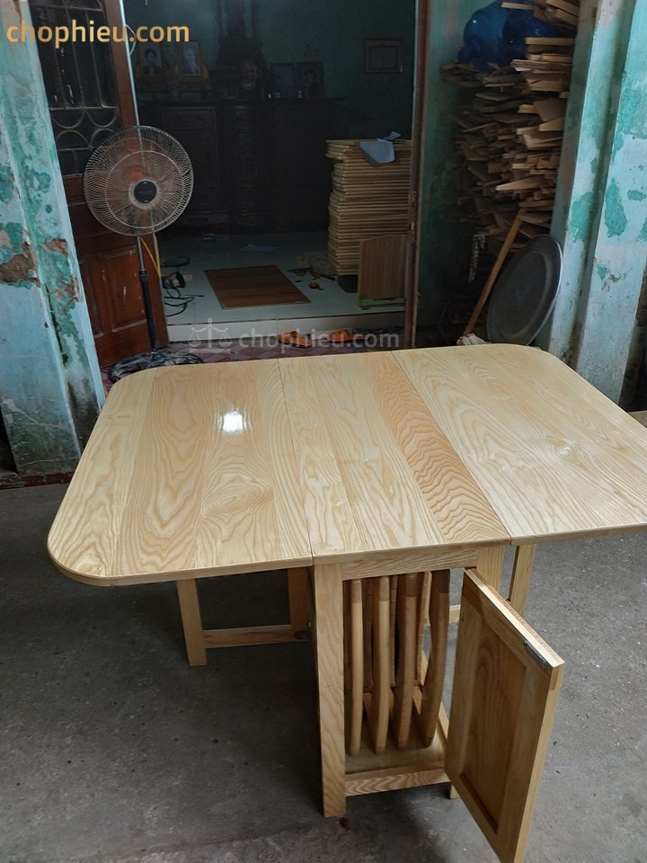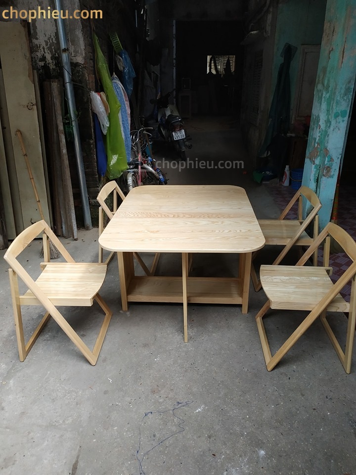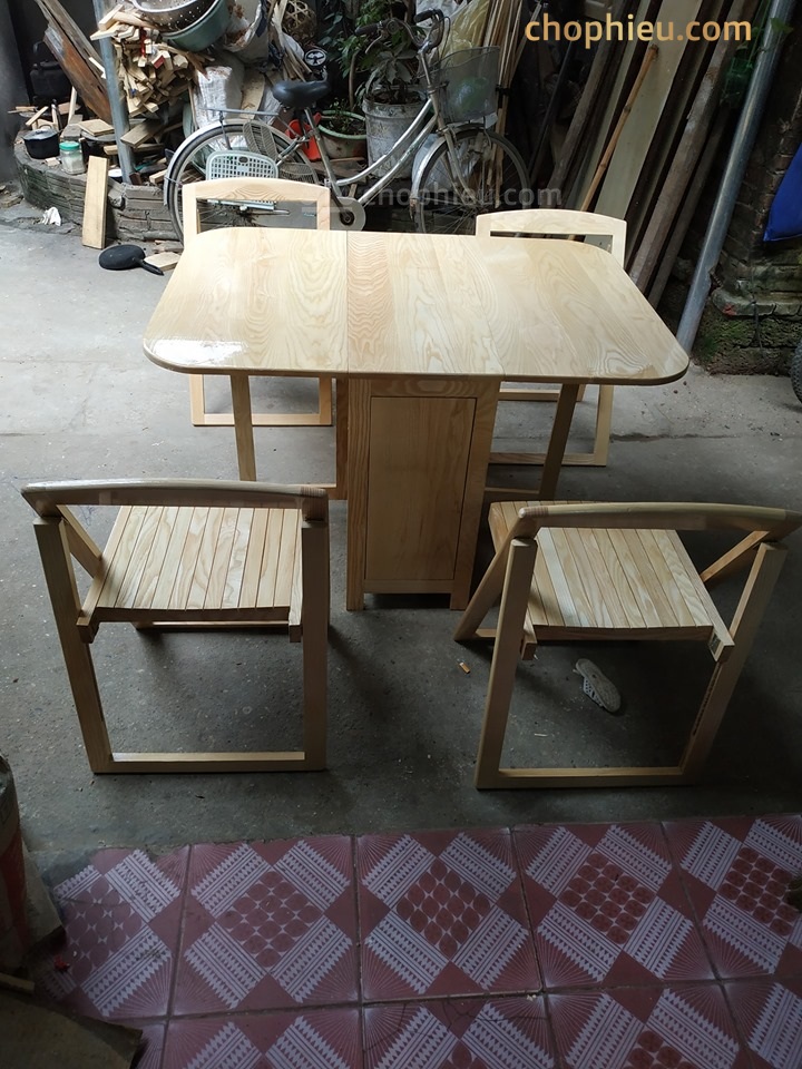 Kích thước: 1 bàn dài 120cm x rộng 90 x cao75cm  cùng 4 ghế (Gấp gọn lại còn 38cm x 90cm cao 75)