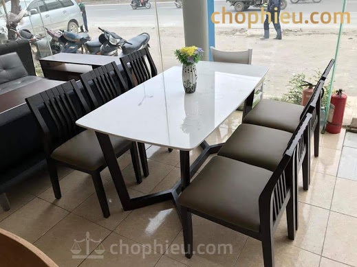 Kích thước: 1 bàn dài 160cm x rộng 80cm x cao 75cm cùng 6 ghế