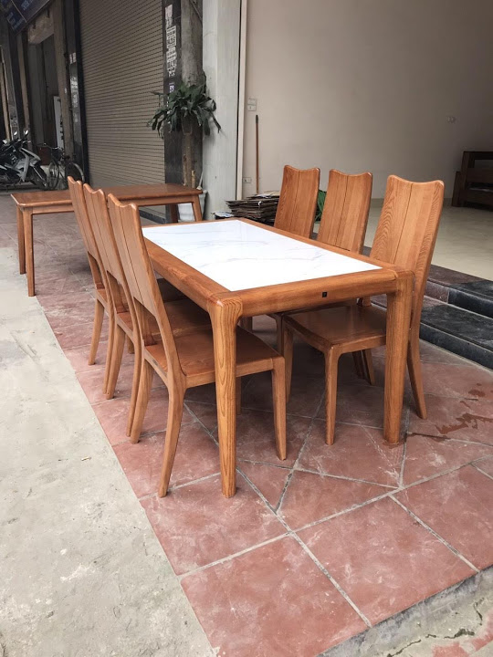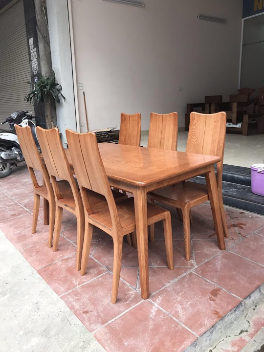 Kích thước: 1 bàn dài 160cm x rộng 80cm x cao 75cm cùng 6 ghế.