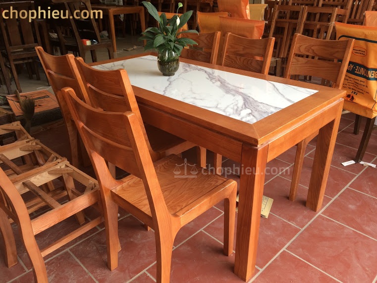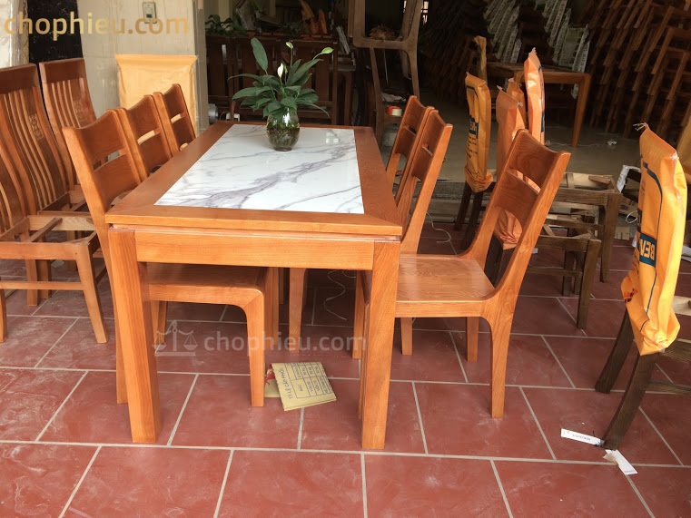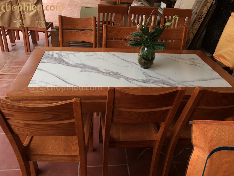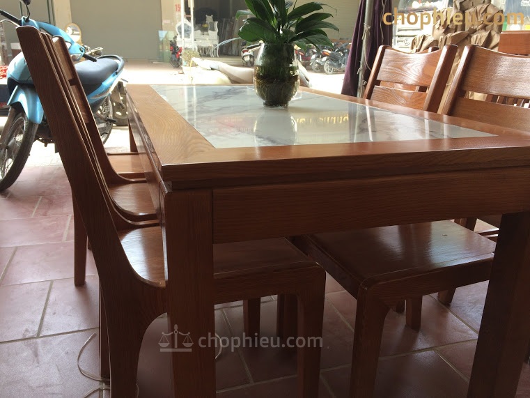 Bộ bàn ăn ghế 2 lá ngang bàn mặt đá