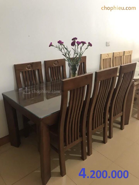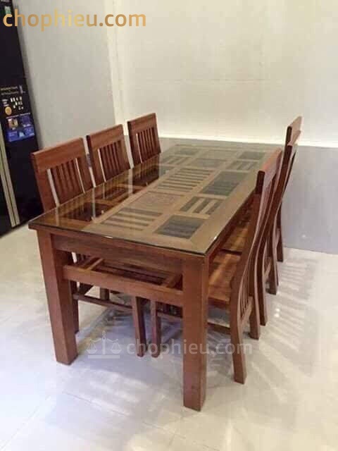 Kích thước: 1 bàn dài 160cm x rộng 80cm x cao75cm  cùng 6 ghế.