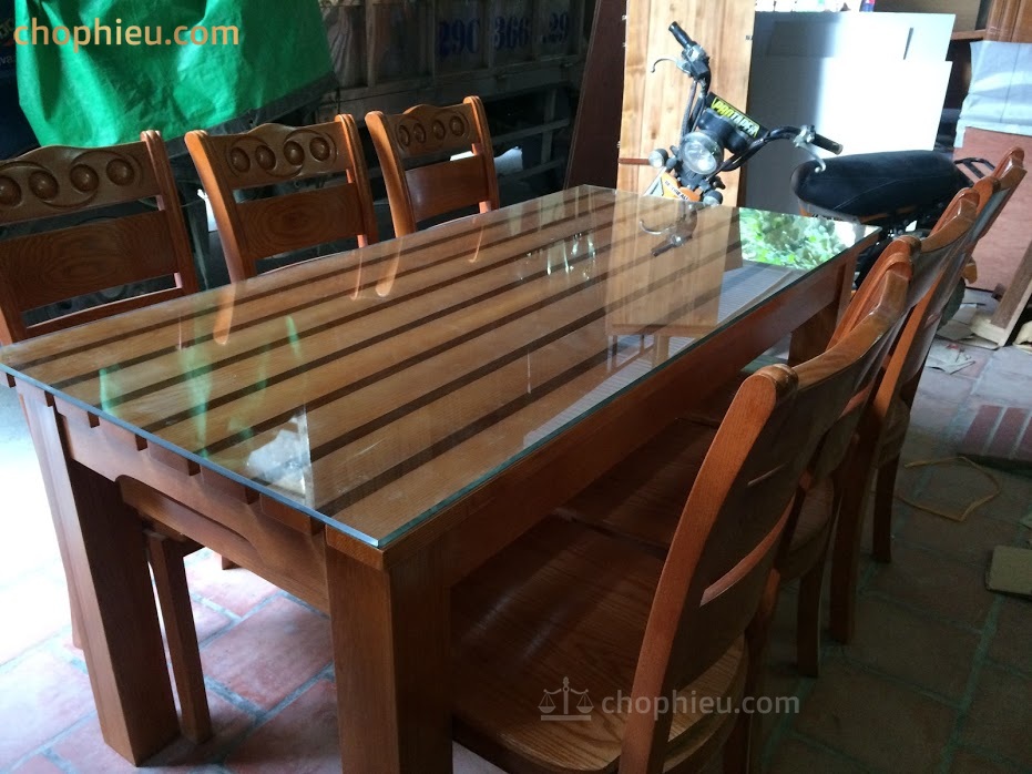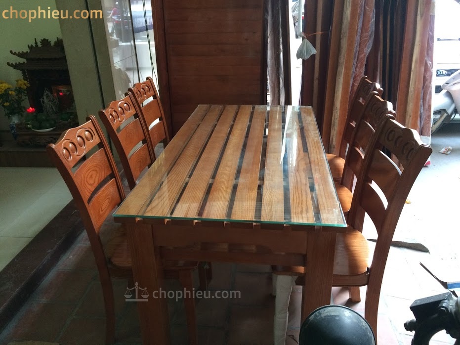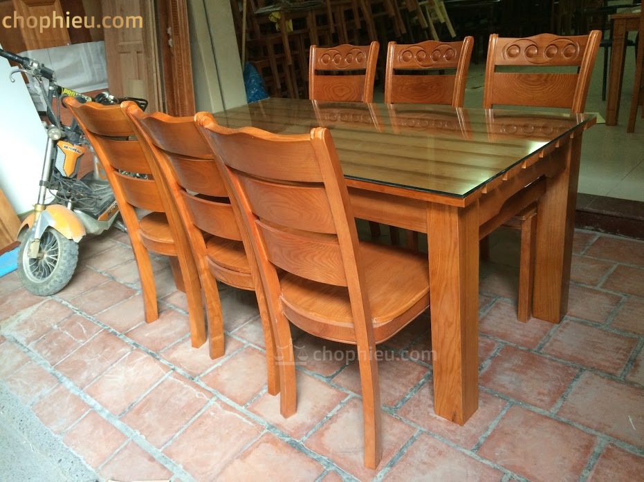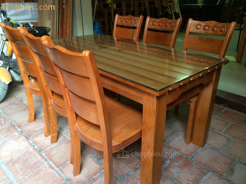 Kích thước: 1 bàn dài 160cm x rộng 80cm x cao 75cm cùng 6 ghế.