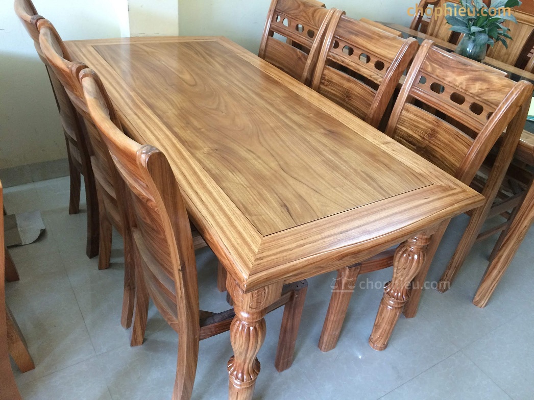 Bộ bàn ăn gỗ hương xám 6 ghế 12