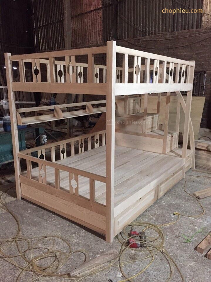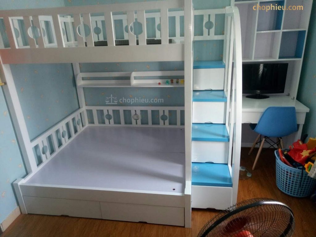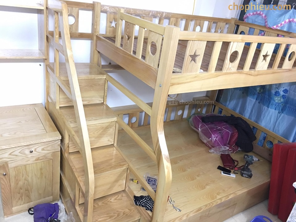 Giường tầng được kết hợp ngăn kéo được thiếu kế tối ưu để tiết kiệm diện tích phòng ngủ, dùng được cho cả trẻ em và người lớn. Thiết kế 2 tầng giường nằm tầng dưới lớn tầng trên nhỏ kết cấu chịu lực tốt, và 2 kéo để quần áo rất tiện lợi, kết hợp với thang lên xuống dạng bậc thang, độ dốc ít rất an toàn,đồng thời cũng tạo nên dáng vẻ mềm mại cho toàn bộ chiếc giường.