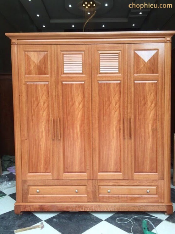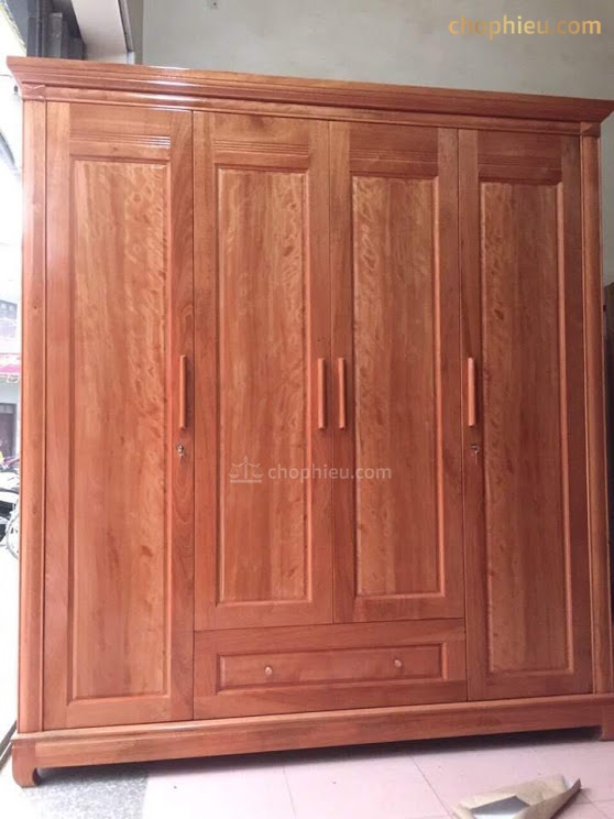 nguyên liệu gỗ Hương vàng tự nhiên và trải qua một quy trình xử lý nguyên liệu nghiêm ngặt nhằm nâng cao chất lượng, độ chắc chắn và độ bền sử dụng lên đến hàng chục năm, tủ quần áo 4 cánh gỗ đinh hương cao cấp.