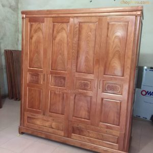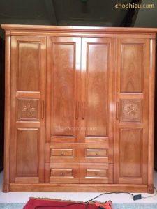Tủ quần áo 4 cánh gỗ xoan đào với những đường vân gỗ tự nhiên mềm mại, quyến rũ đã tạo nên một điểm nhấn đặc biệt làm toát lên vẻ đẹp mộc mạc mà không hề kém phần sang trọng hiện đại, chắc hẳn sẽ khiến cho không gian phòng ngủ của bạn trở nên gọn gàng và sang trọng đẳng cấp hơn rất nhiều .